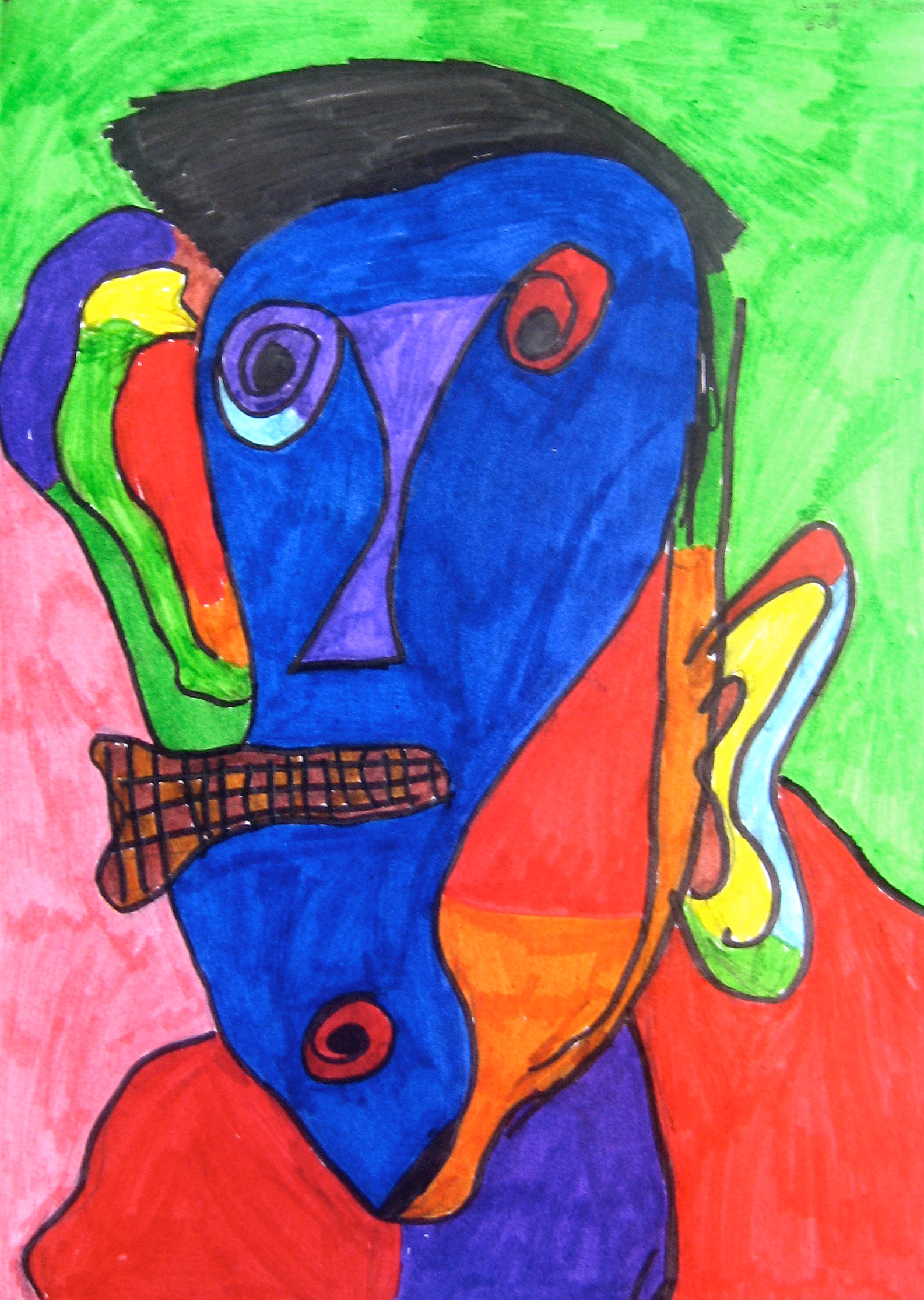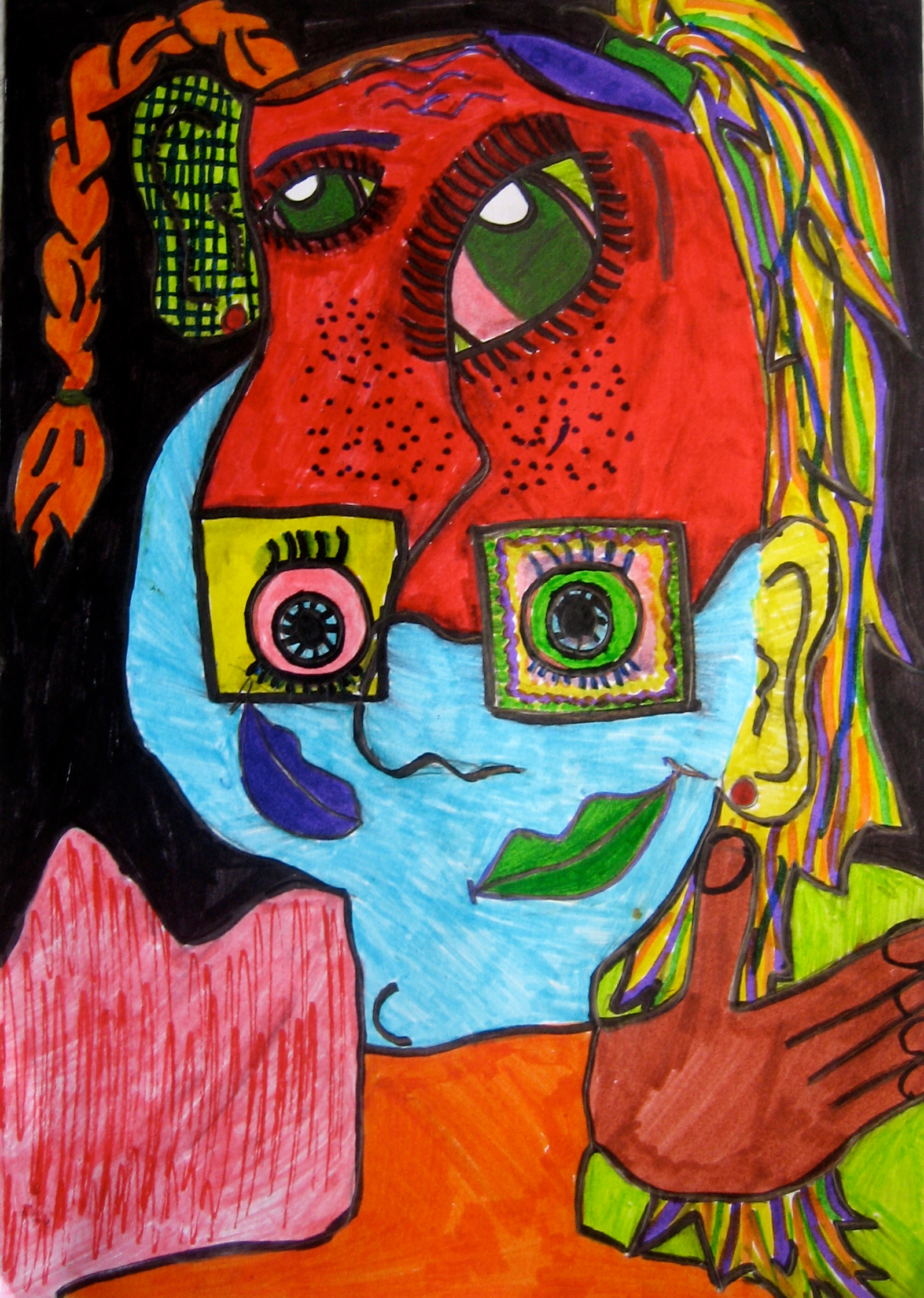 Du ska teckna ett porträtt, men ansiktsdelarna behöver inte sitta där de brukar. De behöver inte se ut som de brukar heller. Och du kan teckna fler eller färre av dem också om du önskar. Som inspiration ska du använda dig av Picassos stil. Nedan ser du några av Picassos porträtt: